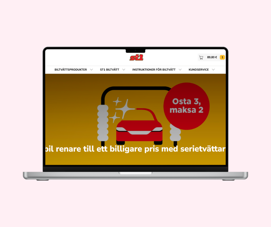 Tidigare låg biltvättsbutiken på en separat webbplats, vilket gjorde kundresan onödigt krånglig. Nu finns allt samlat under St1.fi – från tvättkoder och kvitton till köphistorik och användaruppgifter. Genom att samla allt på ett ställe blev både kundupplevelsen och driften smidigare.